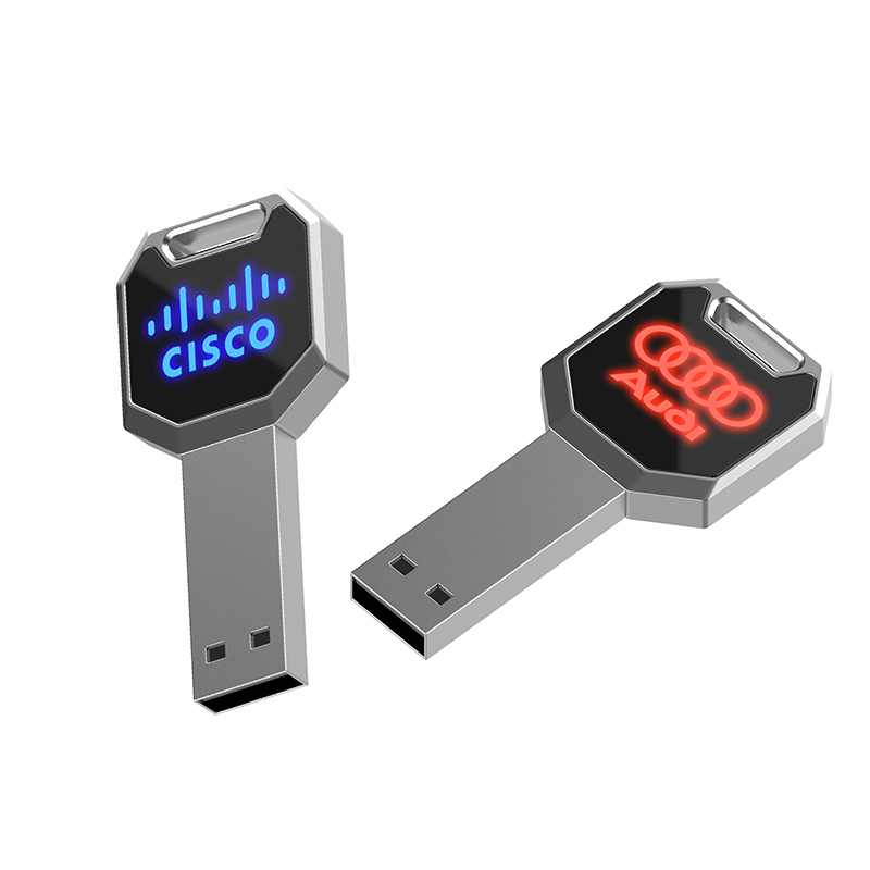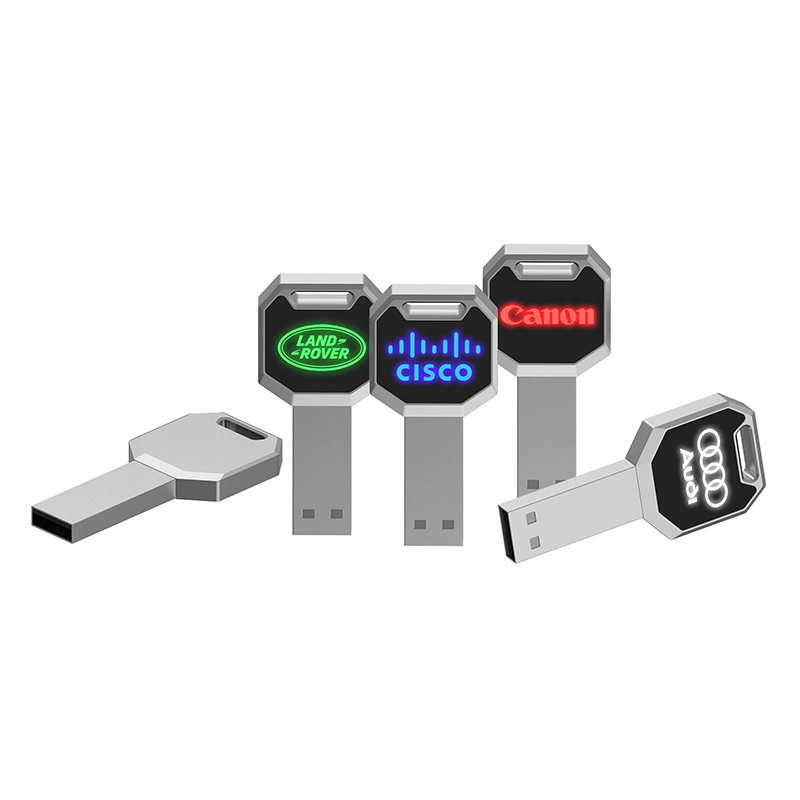 這款金屬鑰匙形狀發(fā)光LOGOU盤,采用金屬材質(zhì),發(fā)光面板實(shí)現(xiàn)各種LOGO各種顏色LOGO體現(xiàn)出來,外觀精美大方。