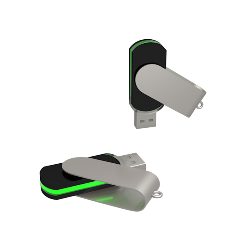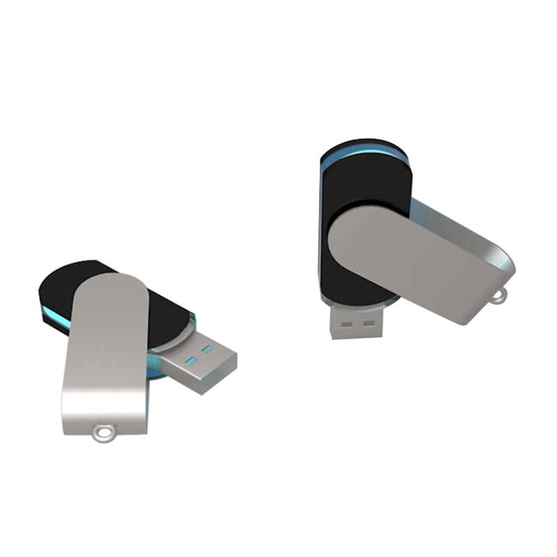 新款旋轉發光U盤,采用金屬材質,發光面板實現各種LOGO各種顏色LOGO體現出來.外觀精美大方.