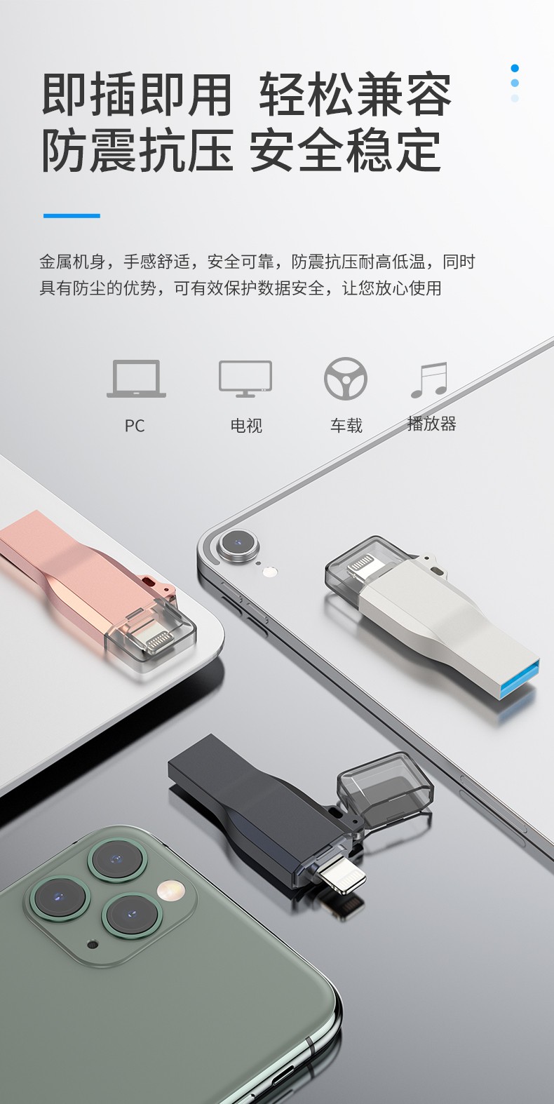 整體機身采用鋅合金材質打造,堅固耐用,精致大氣外觀, 非常高大尚,金屬機身,高速穩定,即插即用,兼容性強!