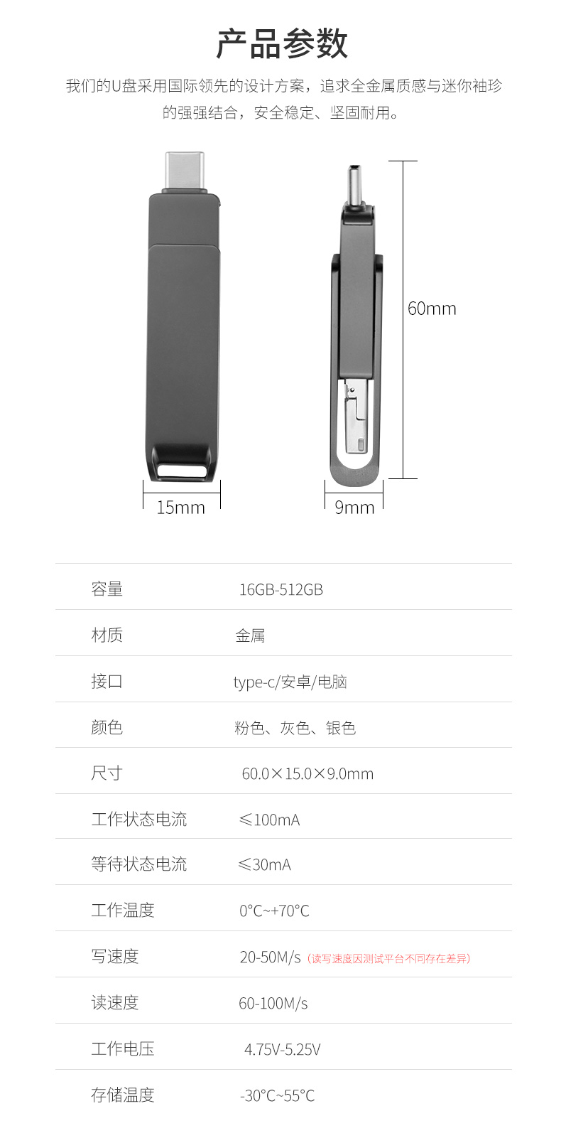 2021款最新安卓手機U盤.蘋果手機U盤.type c手機U盤 旋轉式手機電腦U盤.外觀采用金屬材質.使用非常方便推拉款式.