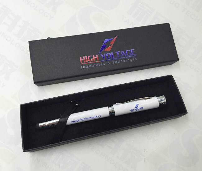 觸控筆U盤配有精致的禮品盒包裝,包裝上印有公司logo和宣傳語,logo采用UV油墨進行印刷,使得logo更加清晰,色彩效果好,整體非常的高端時尚。