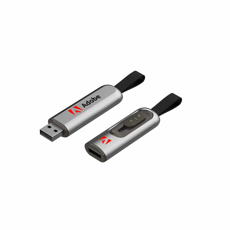 帶硅膠條推拉新品金屬U盤推薦,采用高檔金屬材質,可為客戶OEM定制各種LOGO,外觀非常精美高大尚,尤其是外殼采用硅膠皮條掛扣設計,非常適合廣大客戶。