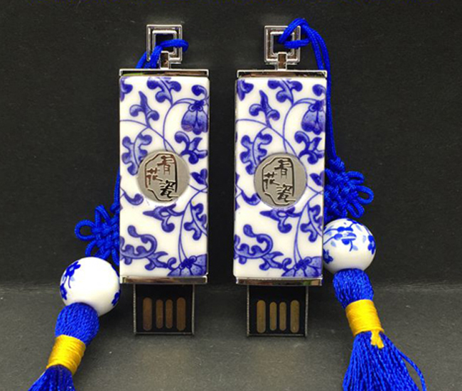 青花瓷鑰匙推拉U盤 陶