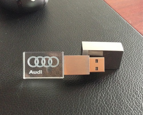 一汽奧迪汽車定制的這款水晶3D內雕logo水晶U盤,插上電腦水晶部分是LED燈的,可以體現出來LOGO大氣,送給客戶最佳禮品.