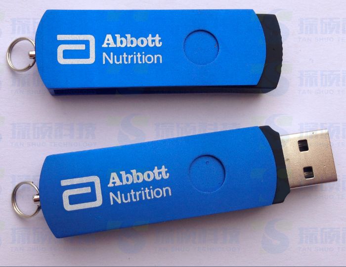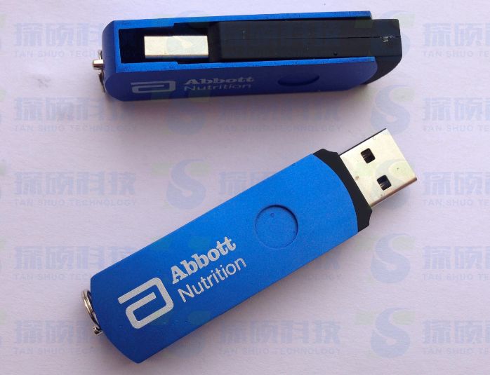 這款大旋轉U盤材質夾子采用鋁制氧化表面多種顏色可選,表面積廣LOGO,是奶粉企業定制禮品最佳選擇